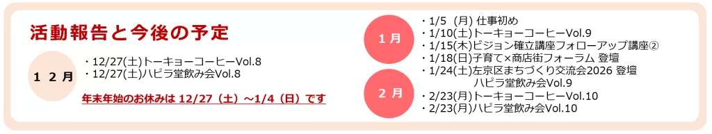 ●〇活動報告と今後の予定〇●